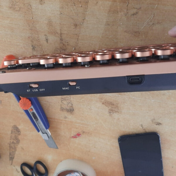 Taktis. Berdenting. BACKLIT: tombol mekanis yang bercahaya di belakang disetel agar terasa taktis dan “berdenting”, mengingatkan pada mesin tik vintage.