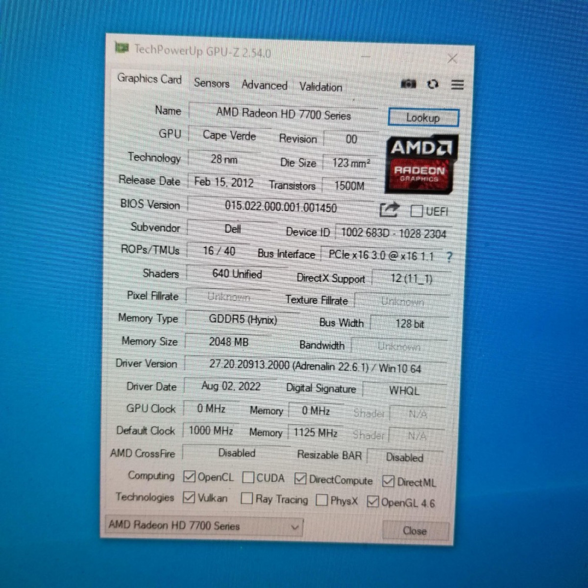 DELL Radeon HD 7770 HD7770 2GB GDDR5 128 Bit