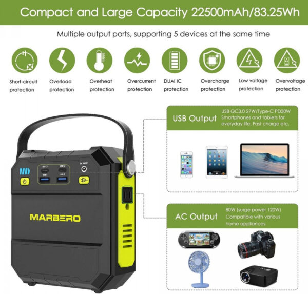MARBERO M87 22500mAh 80W Portable UPS Generator Power Station