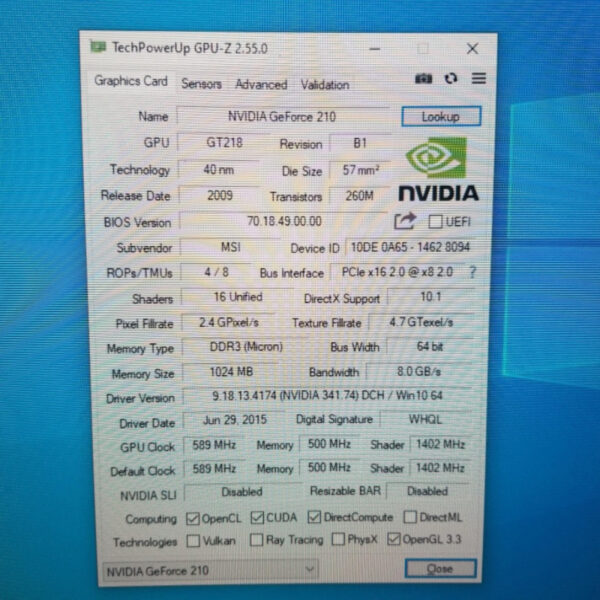 MSI GeForce 210 1GB GDDR3 64 Bit T1