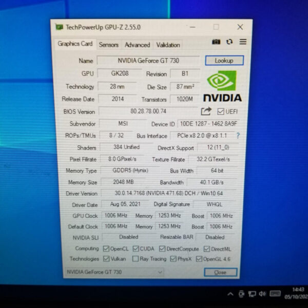 MSI GeForce GT 730 GT730 2GB GDDR5 64 Bit