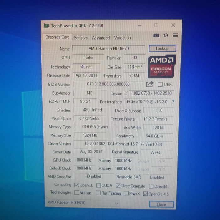 MSI Radeon HD 6670 HD6670 1GB GDDR5 128 Bit