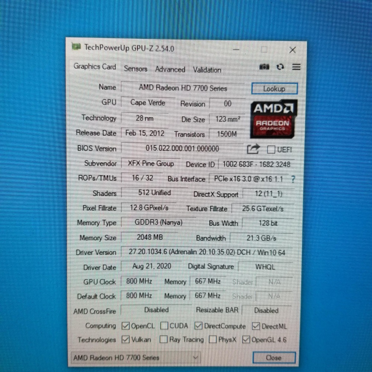 XFX Radeon HD 7750 HD7750 2GB GDDR3 128 Bit